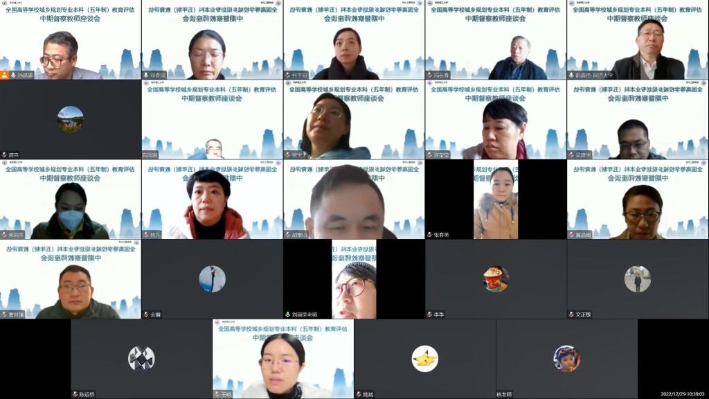 2022年12月29日,住房和城乡建设部高等教育城乡规划专业教育评估委员会(以下简称“评估委员会”)对73882必赢最新官网城乡规划专业(本科)教育评估进行中期督察教师座谈会网络会议。