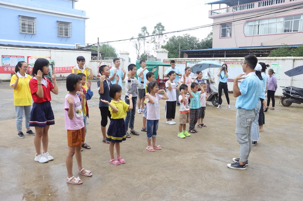 15日上午,在三树村委会,团队成员在必赢官网团委书记姚慧老师的带领下认真布置完画室后,看到当地居民带着孩子们陆陆续续来到三树村委会,立即积极引导孩子们到画室就座并分发画纸和画笔,然后指导他们如何更好地画出他们脑海中的图画。绘画过程中,整个画室的气氛非常活跃,家长陪伴孩子们认真地画出自己心中的图画,团队成员在旁边积极指导。绘画完成后,孩子们拿着自己的作品与团队成员开心合影。随后,团队成员热情教孩子们跳拍拍操,孩子们十分兴奋地学习着。由于突然下雨,趣味运动会被迫取消,但是孩子们热情不减,团队成员给每位孩子分发书包、书本和笔盒,希望他们快乐成长、早日成才。