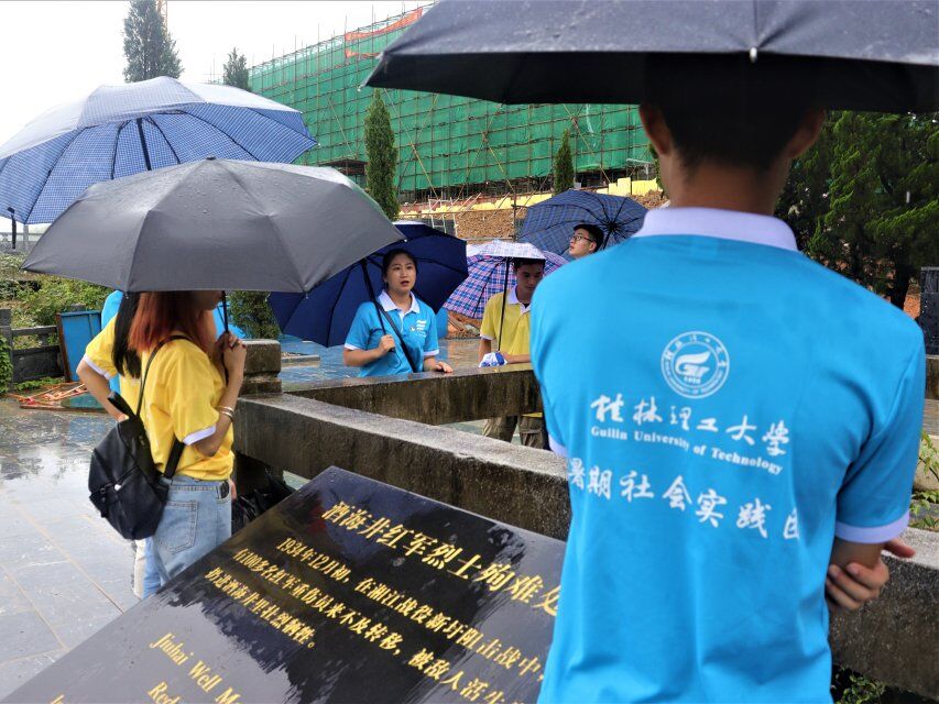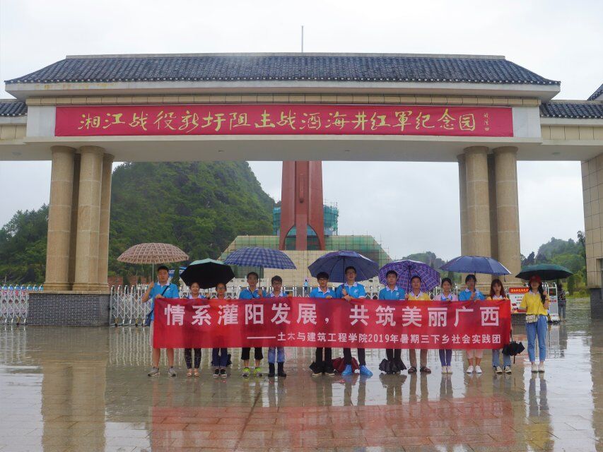 2019年7月13日,“情系灌阳发展,共筑美丽广西”暑期社会实践团,出发前往本次社会实践的第一个地点—灌阳县湘江战役新圩阻击战酒海井红军纪念园。