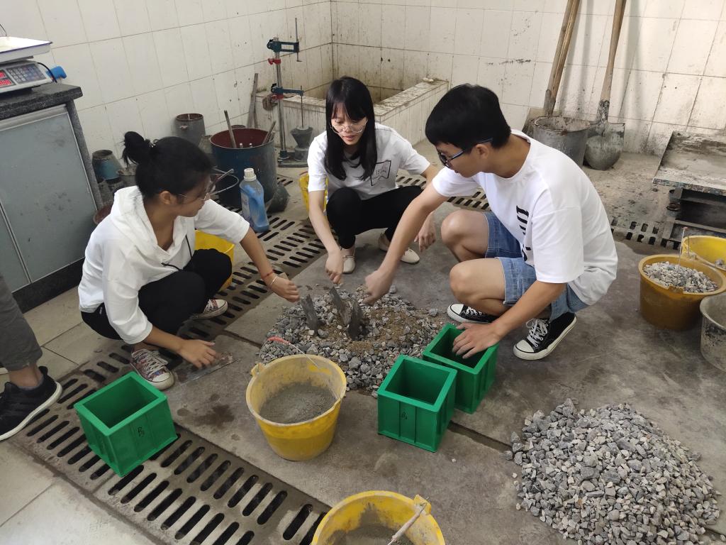 在竞赛中,各竞赛小组团结协作,分工明确。赛前,小组成员共同设计自己小组的混凝土配合比,在实践操作过程中称量砂、碎石、水泥等各种材料,充分搅拌混凝土,并将其放入模具中。每个参赛小组完成了三个150mm×150mm×150mm试块,等待试块养护28天后,将会进行承压实验,根据每组三个试块抗压的平均值以及每组完成试块的时间进行评分。本次大赛设置一等奖一名,二等奖两名,三等奖三名,优胜奖四名。。