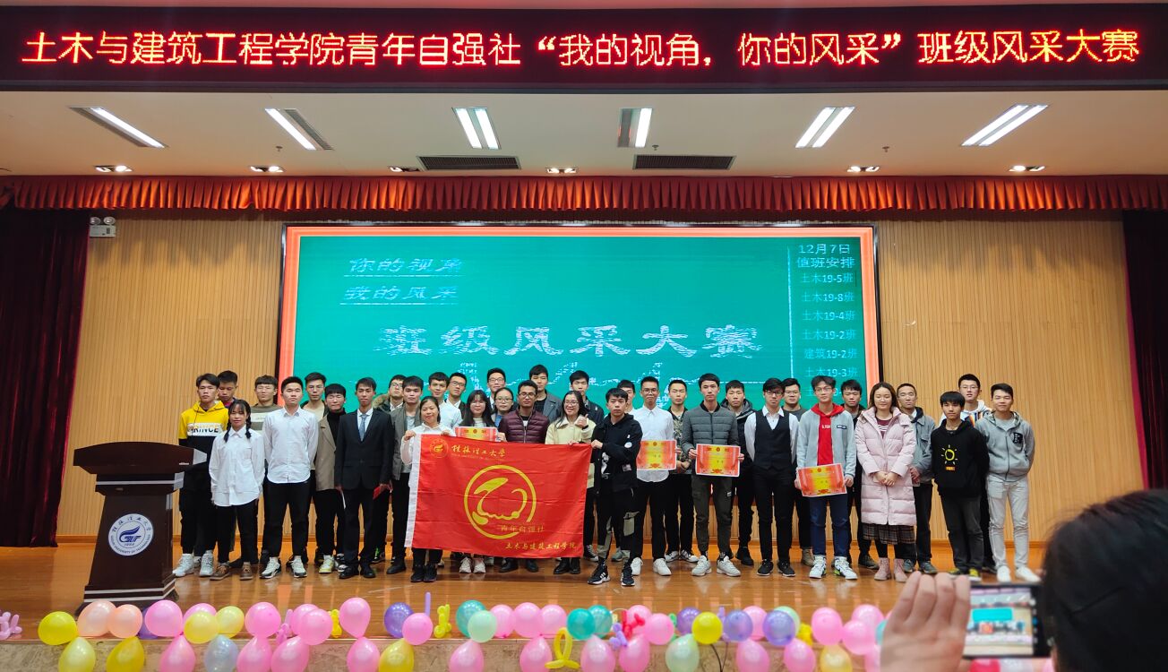 为了推动土建学院19级班级学风建设,加强校园精神文明建设,由73882必赢最新官网土建青年自强社于12月7日在雁山图书馆报告厅举办“我的视角,你的风采”班级风采展示大赛,本次大赛的结果是线上和线下的综合评分是最终的得分。出席本次活动并担任线下评委的有19级辅导员安邦国老师和彭思思老师,土建团委学生会新闻信息部肖规一,土建团委学生会科技部张东荣,土建青年传媒中心邹伟林和黄继嘉以及青年自强社社长梁衍照。