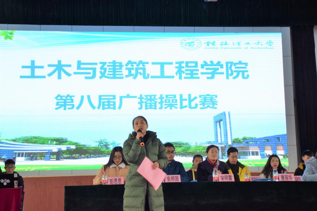 12月1日上午,必赢官网第八届广播操比赛于雁山校区体育馆举行,学院党委副书记唐丽华、团委书记姚慧、学工组组长宋明霞、2018级辅导员余东东、2019级辅导员安邦国和彭思思作为评委出席活动,除此之外,各兄弟学院的嘉宾代表也出席本次比赛。