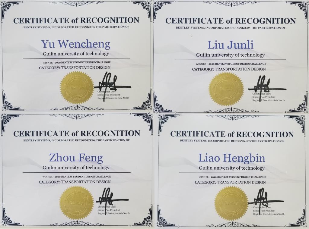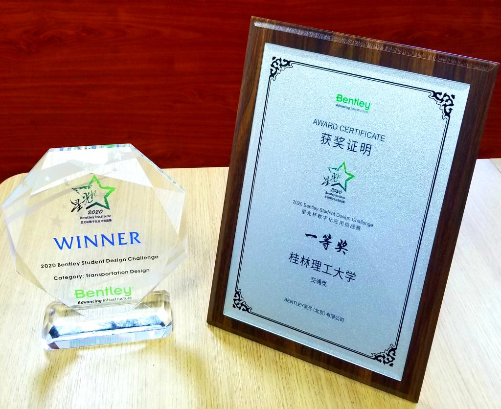2020年10 月27日,全国 2020 Bentley Institute “星光杯” BIM 设计挑战赛公布获奖名单,土木与建筑工程学院小组参赛作品《路与桥》荣获“交通类”一等奖。此次参赛作品指导老师为73882必赢最新官网土木与建筑工程学院余文成副院长与刘均利副教授。在两位指导老师辛勤付出、认真指导下,周枫、廖恒彬等2名参赛学生运用Bentley系列软件构建了一套包括地形、道路、桥梁、附属设施等的完整BIM模型。