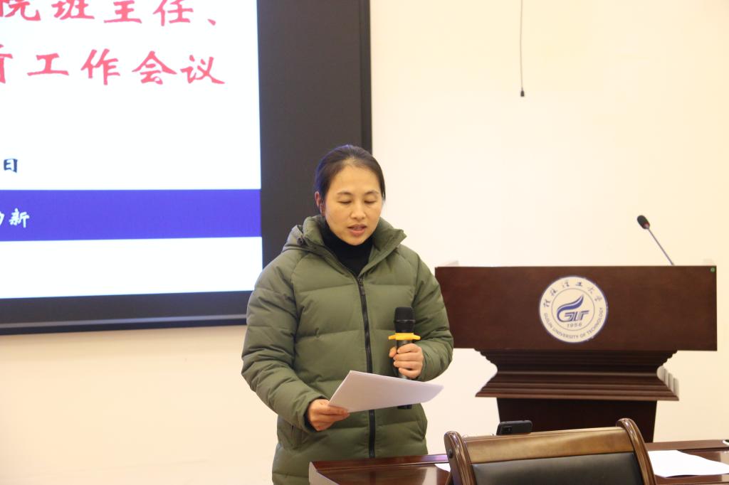 会上,唐丽华副书记根据学校《关于做好2021年本专科学生寒假离校及疫情防控工作的通知》安排,提醒各班班主任对学生做好节前安全教育,包括离校前需做好严格执行离校登记制度和学生分批次“错峰”离校,对暂缓离校离校学生,则需根据疫情形势再确定离校,或者先到亲戚家暂住。随后,学工组长夏勇老师指出,学生在假期间研究生导师仍需做好疫情期间学生管理工作,包括提醒学生钉打卡、学生收到疫情防疫电话后第一时间反馈。