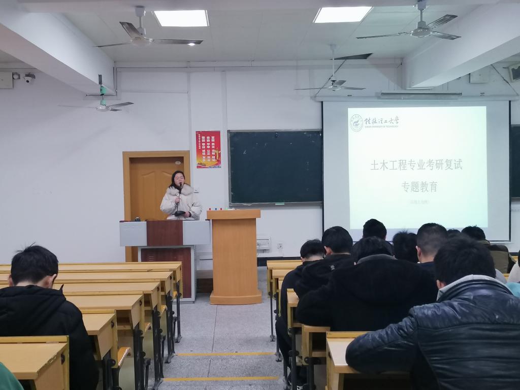 讲座上,李明霞老师首先介绍了线上复试的流程,接着分别对土木工程专业考研的结构、道桥、岩土三大方向进行讲解,包括复试所用参考书籍、复试要求、面试流程、英语面试,如何准备面试。讲座中,同学们认真听讲,积极参与,认为对即将到来的复试颇有帮助,增强了考研复试同学的自信心。