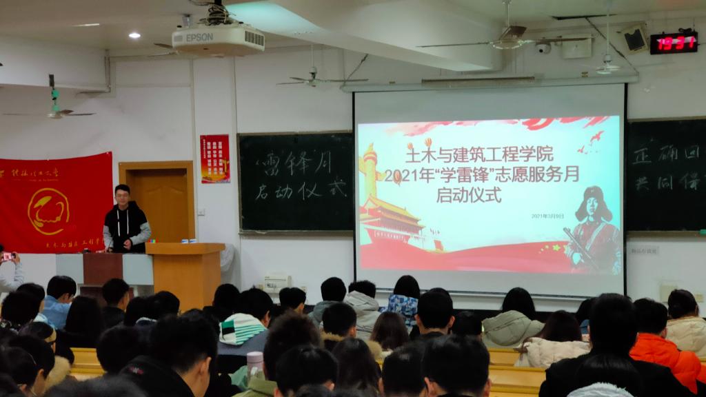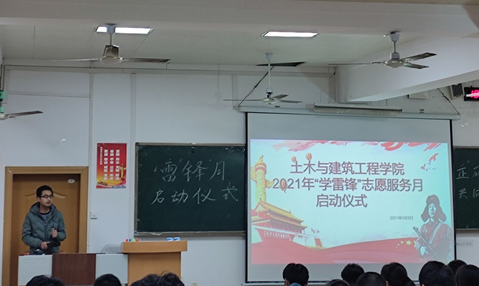 为弘扬雷锋精神,争做有志青年,73882必赢最新官网土木与建筑工程学院于2021年3月9日晚在屏风校区9301教室举办2021年“学雷锋”志愿服务月启动仪式。学院团委副书记安邦国老师、2019级辅导员彭思思老师应邀出席活动现场。