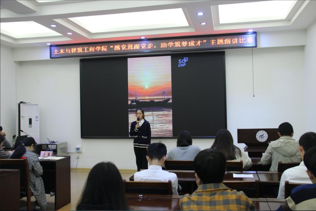 为庆祝建党一百周年,培育受资助学生的爱国爱党情感和感恩意识,进一步推进学院学生资助政策宣传工作,土建学院2021年4月13下午在屏风校区4204教室举行以“感党恩跟党走,助学筑梦成才”为主题的资助演讲比赛,安邦国、彭思思、李明霞、王冕、唐子晴五位老师应邀担任本次活动评委。