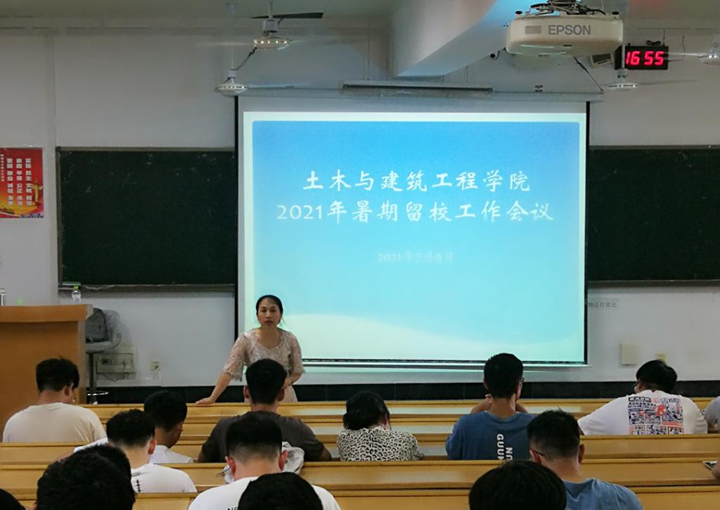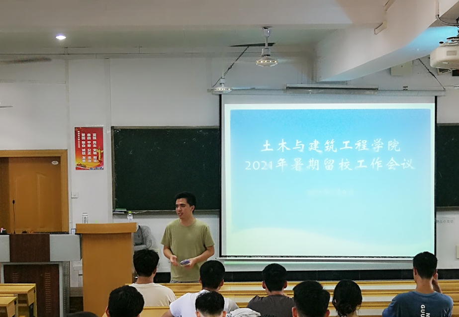 为切实做好暑假期间研究生安全留校工作,必赢官网于7月9日下午在9301教室召开土木与建筑工程学院研究生暑期留校工作会议,学院党委副书记唐丽华,学工组长夏勇超老师及全体暑假留校研究生参加了此次大会。