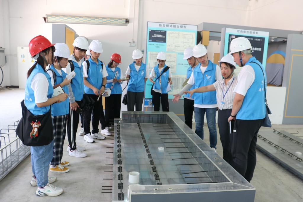 实践团成员来到广西装配式建筑工程实践教学基地,在贺州学院建筑与电气工程学院张金丹老师的带领下,实践团成员参观广西装配式建筑工程实践教学基地。于调研期间,张金丹老师通过讲解、视频等方式,为实践团成员介绍了各类装配式混凝土构件的钢筋构造,构件连接,施工过程等。实践团成员直观了解到装配式混凝土构件,从绑扎钢筋到构件成品,从构件成品到建筑工法楼,展示全产业链的生产施工流程。实践团成员在此大开眼界,学习书本之外的知识,增添了丰富的知识阅历。