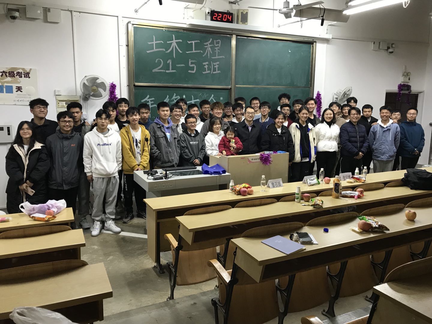为了推动土建学院新生班级学风建设,加强校园精神文明建设,土木工程21-5班于12月30日举办班级风采展示暨元旦庆祝活动,出席本次活动的有土木工程21-5班班主任曾召田老师和21级辅导员张宇博老师、张绪婷老师。