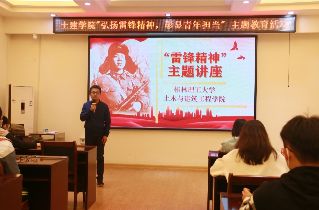 为弘扬和培育新时代雷锋精神,学习雷锋同志先进事迹,践行和培育社会主义核心价值观,土木与建筑工程学院于2022年3月22日19:30在屏风校区4204教室开展“弘扬雷锋精神,彰显青年担当”主题教育讲座,活动由学院青年自强社承办。本次活动邀请学院安邦国老师、经玲老师和彭思思老师以及寒假期间参与疫情防控志愿服务的5名志愿者参会。