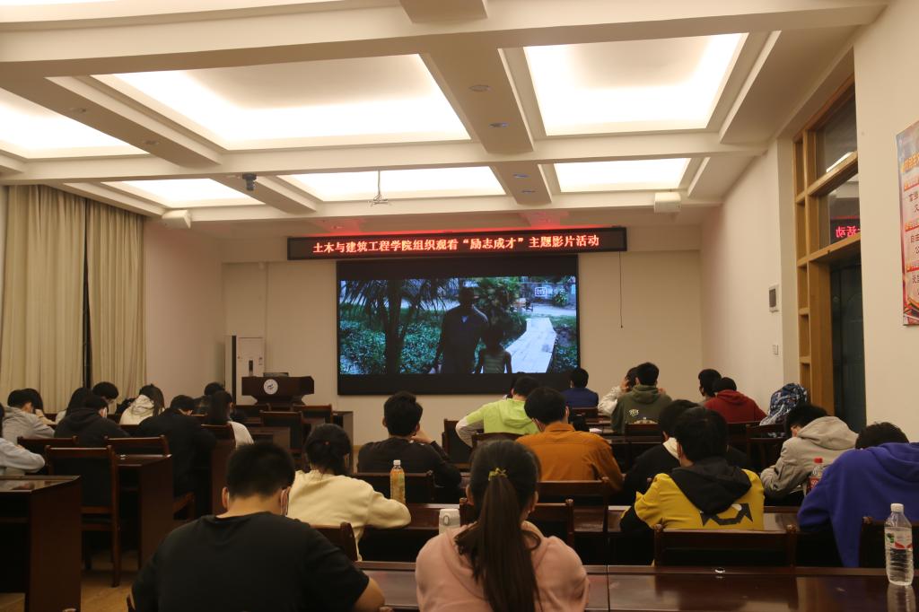 为了进一步推进心理健康教育,增强大学生的责任与使命意识,提高大学生心理承压能力,丰富同学们多彩的情感、美好的心理,引导同学们在生活中积极向上,树立战胜困难的信心和自强不息的精神,锻炼励志成才的信念。土木与建筑工程学院于2022年4月19日晚在屏风校区4204展开“光影“心”播客,跟着电影学心理学”系列活动之心理电影“励志成才”主题观影活动,本次活动由学院青年自强社承办。学院团委副书记安邦国老师、彭思思老师、唐子晴老师出席活动,本次活动以线上+线下结合方式开展,线上为学院各班心理委员以及各宿舍长参与,线下为受资助同学参与,共计300余人。
