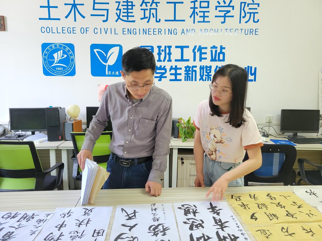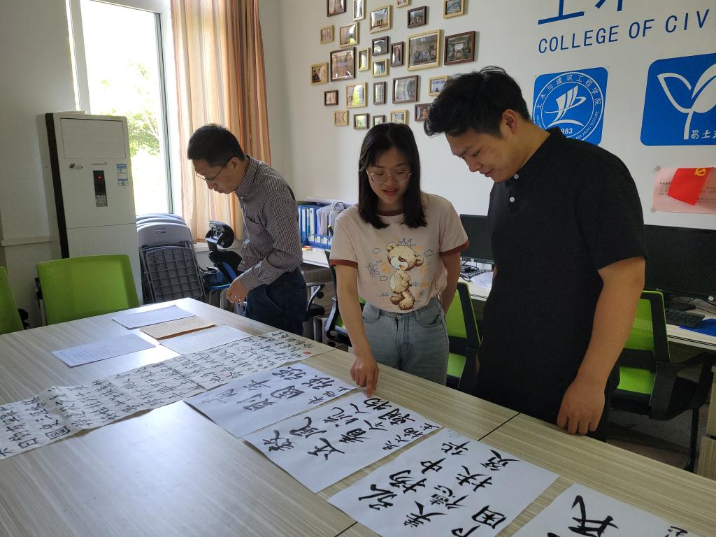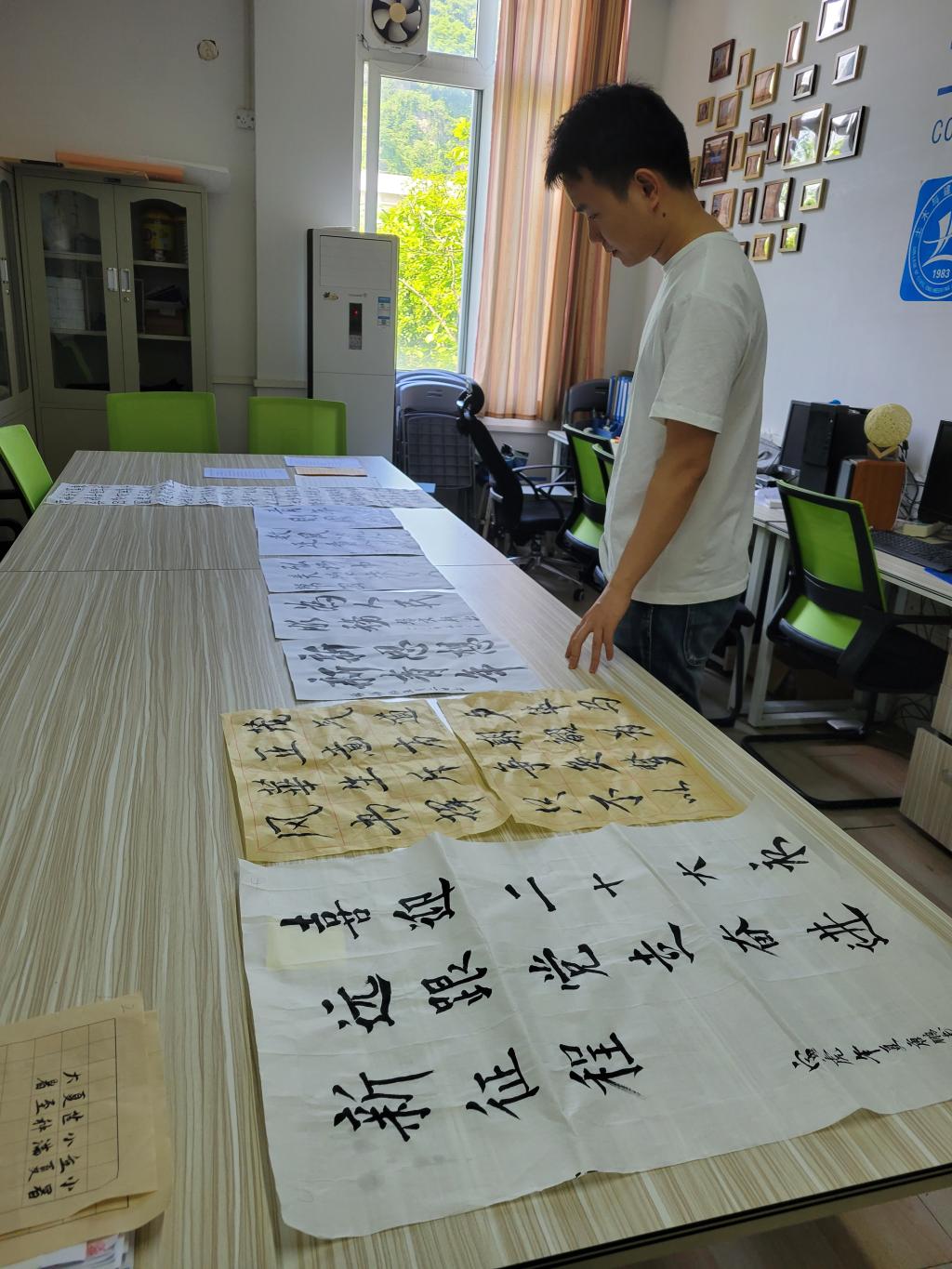 5月5日下午,学院副院长余文成副院长、辅导员彭思思、司富远、汤玉昆四位老师根据收集的书法作品进行现场评审。经过层层筛选,最终评选出软笔作品一等奖2名、二等奖2名、三等奖3名,硬笔作品一等奖2名、二等奖3名、三等奖4名。