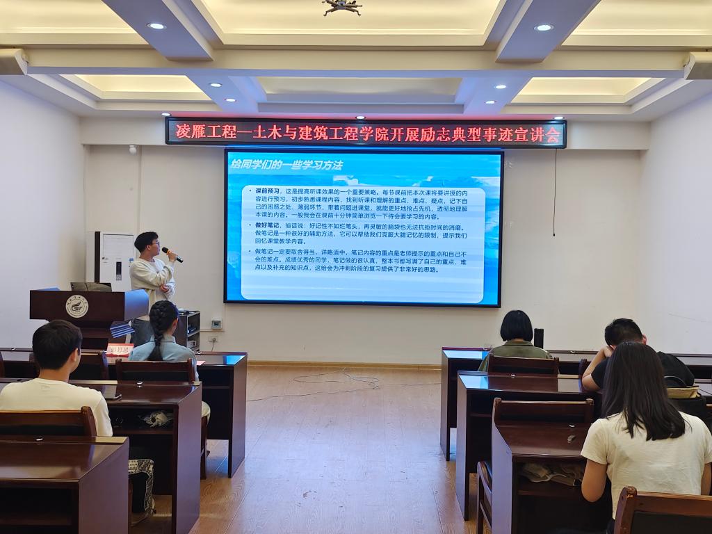 为深入贯彻落实习近平总书记系列重要讲话精神,大力宣传国家资助政策及成效,引导受助学生自助互助,培养学生自立自强、互帮互助、知恩感恩的优秀品质,助力全体受助学生成长成才,土木与建筑工程学院选拔优秀受助学生组建励志学生宣讲团,在全院范围内开展励志典型事迹宣讲会。2022年5月21日晚在屏风校区开展“凌雁工程—百名励志典型事迹宣讲会”。