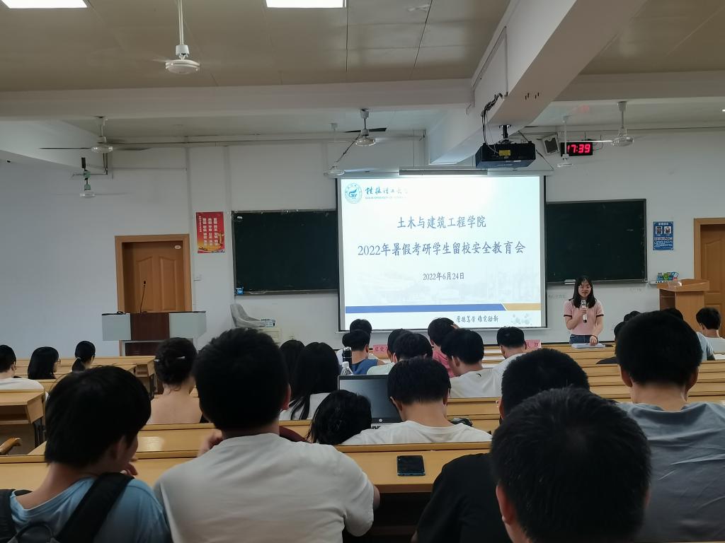 6月24日下午,土木与建筑工程学院在9301教室召开2023届暑期留校考研学生安全教育专题会议,学院辅导员安邦国、彭思思参加会议,全体2023届暑期考研留校学生130余人参加会议。