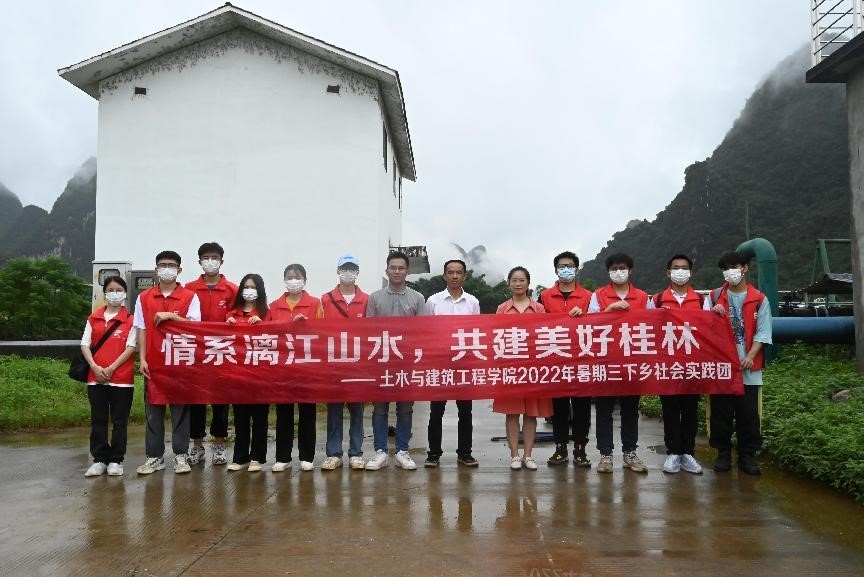 2022年7月4日上午,必赢官网“情系漓江山水,共建美好桂林”社会实践团一行12人,出发前往兴坪镇垃圾中转站及污水处理厂。在团队谢基柱老师和罗银霞老师的联系下,实践团荣幸地邀请到镇长带领实践团前往调研。