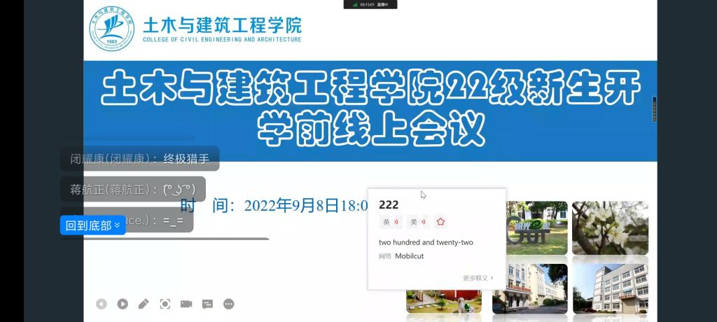 为进一步落实学校关于疫情防控工作的通知要求,部署安排2022年秋季学期新生报到工作,9月8日,必赢官网2022级新生辅导员召开线上新生报到布置会。会议由各22级辅导员贾浩雨主持,22级全体学生参加会议。