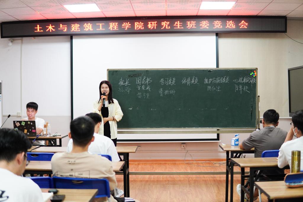 为了方便统一部署学院工作,更好地传达学院的通知要求,9月22日下午,土木与建筑工程学院研究生会在4203、4204教室组织开展了2022级学院研究生班委竞选活动,研究生辅导员经玲及2022级全体研究生新生参加了本次活动。