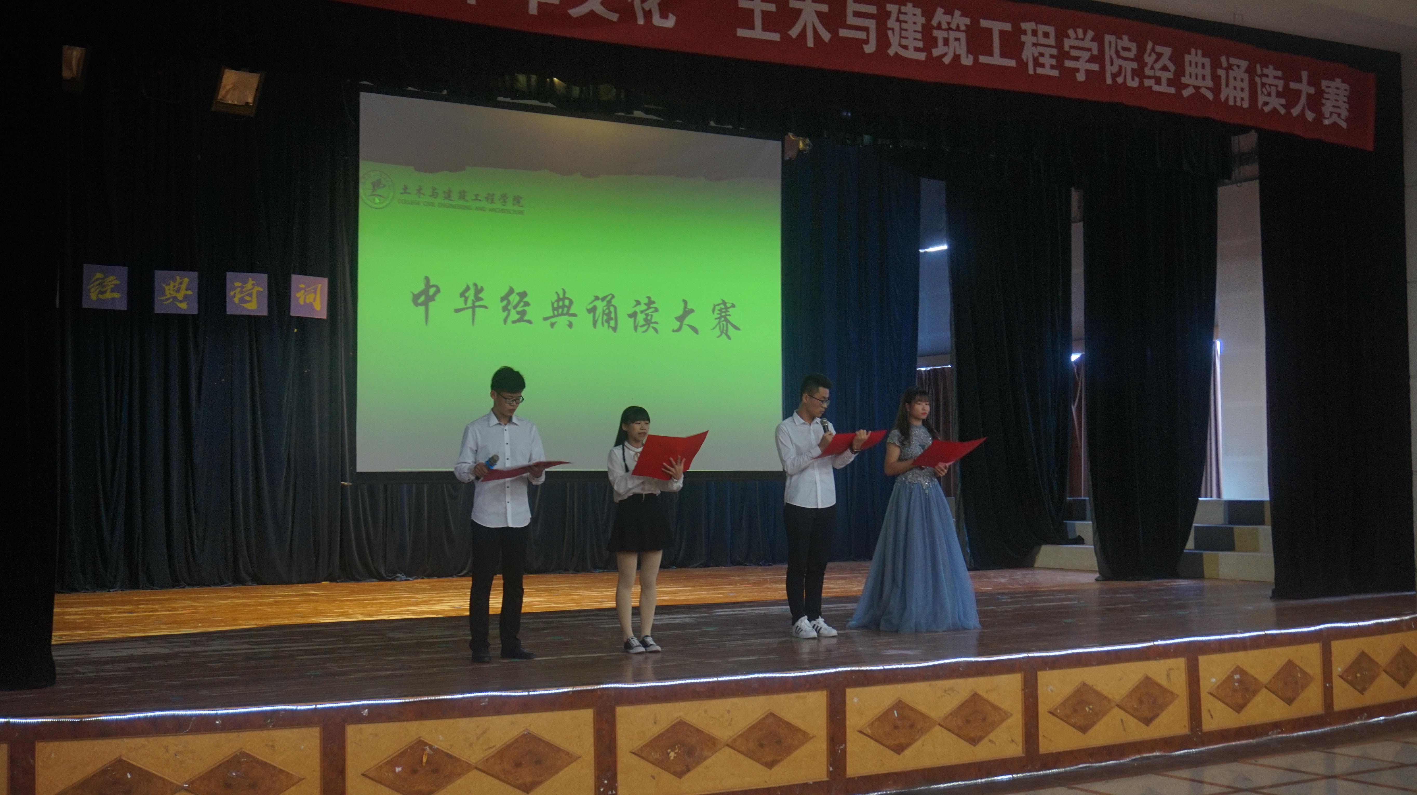 为传承和弘扬优秀传统文化,丰富校园文化生活,并为参加校级中华经典诵读比赛选拔优秀人才,必赢官网于10月13日下午在屏风校区南礼堂举行“诵经典诗词·弘中华文化”经典诵读大赛。校团委校园文化部易姗姗老师,必赢官网团委书记姚慧老师、学工组组长宋明霞老师、组织员石习杰老师及17级辅导员马文硕老师莅临现场并担任评委,材料学院文艺部部长胡超俊、商学院主持人队16级队长何蒙作为嘉宾参加此次活动并担任评委,现场共计200多人观看了此次比赛。