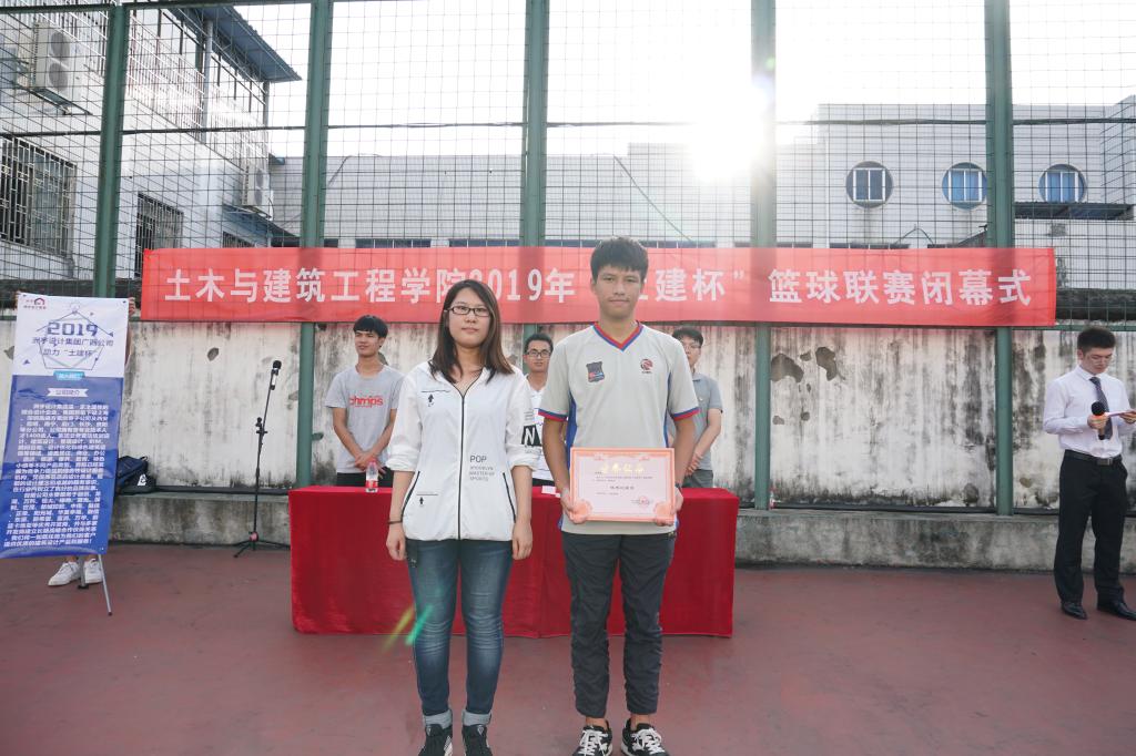 首先,由张宇博老师致辞,他对运动员在赛场上的精彩表现示以肯定,对“友谊第一,比赛第二”的运动精神表示赞赏,并表示期待下一次更好的表现。在这次比赛中土木2017-4班、建筑学2016-1班、土木2016-1班、城乡规划2017级分别获得屏风校区男队前四名,土木2018-6班、土木2018-9班、土木2018-5班、土木2018-10班分别获得雁山校区男队前四名,2015级联队获得女队第一名,并由安邦国老师颁发奖状。2015级联队韦茜宁、土木2018-6班陈港、土木2017-4班蒋颖分别获得女队、雁山校区、屏风校区最有价值球员,由张宇博老师颁发奖状。黄忠诚和刘杨柳获得雁山校区“优秀裁判员”称号,龙胤岑、庞志远和刘劲豪获得雁山校区“优秀记录员”称号,陈劲光、龙泓屹、胡连容获得屏风校区“优秀裁判员”称号,梁美娟、周利梅、吴婉珍、农羚利、莫晓龙五位同学获得屏风校区“优秀记录员”称号,由李楠老师颁发奖状。