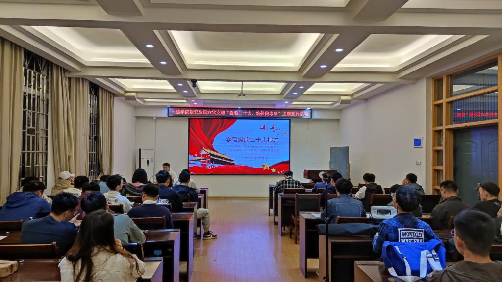 为庆祝党的二十大胜利召开,及时学习领会党的二十大精神,10月31日晚,土木与建筑工程学院第六党支部召开了“喜迎二十大,筑梦向未来”主题党日活动暨支部委员会换届大会,本次支部大会有表决权的正式党员34名,应到会34名,实到会28名,会议由支部副书记黄子恒同志主持。